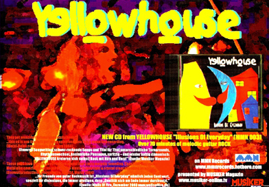 Yellowhouse plays original material only, guitar-oriented melodic rock with lyrics in English, spiced up with good hooklines with seventies roots in a Y2K approach. The band recorded their debut CD "What´s Shining Through" (MMN 002), that contained newer songs like "Return To The Sky", "Now You're Gone",